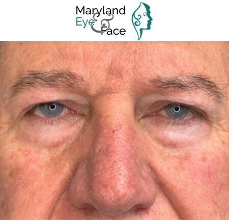 Close-up of a middle-aged person's eyes and brow area, featuring the Maryland Eye & Face logo above.Close-up of a middle-aged person's eyes and brow area, featuring the Maryland Eye & Face logo above.